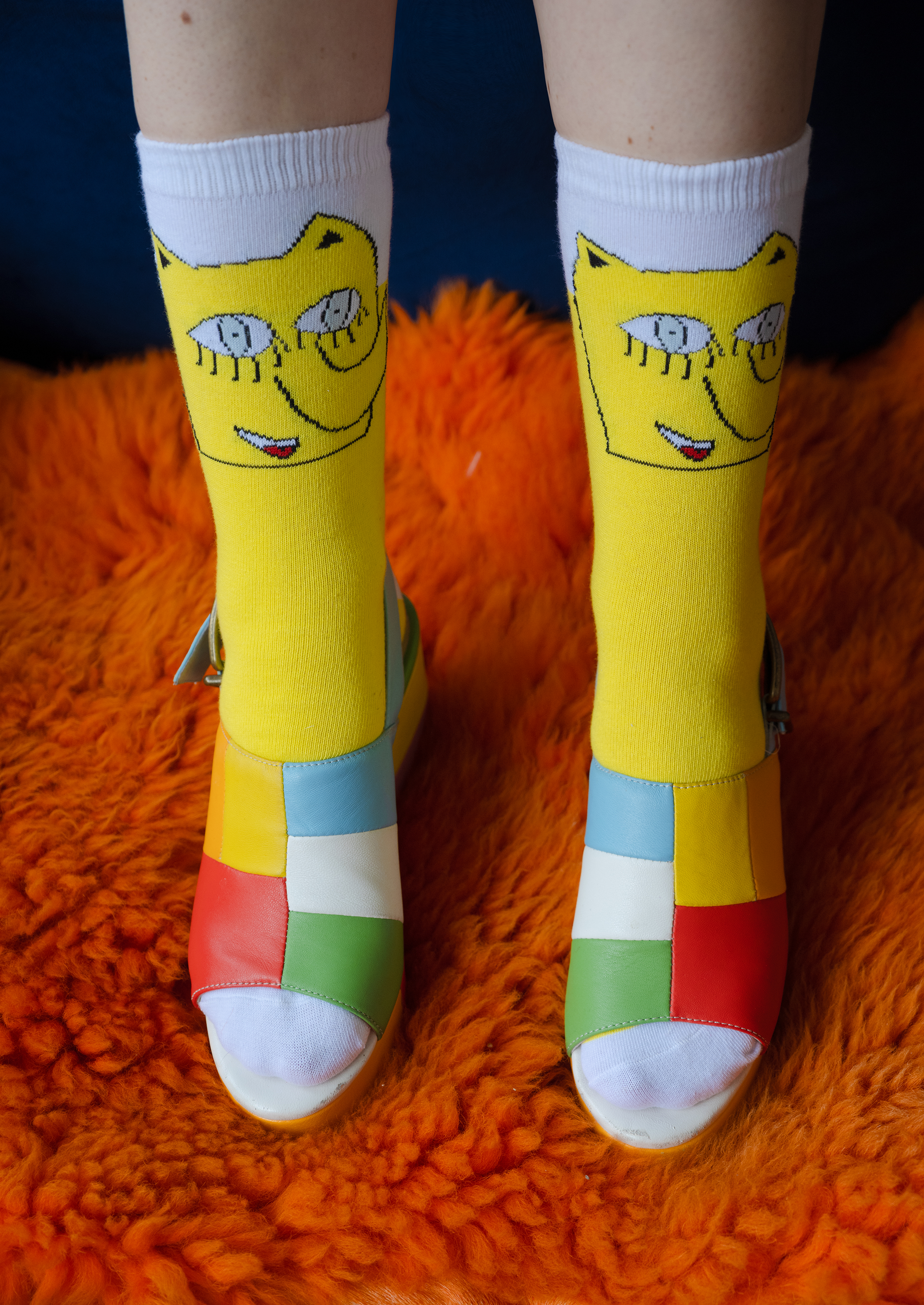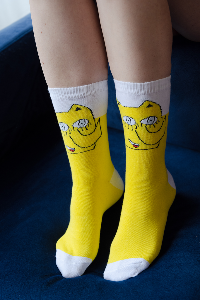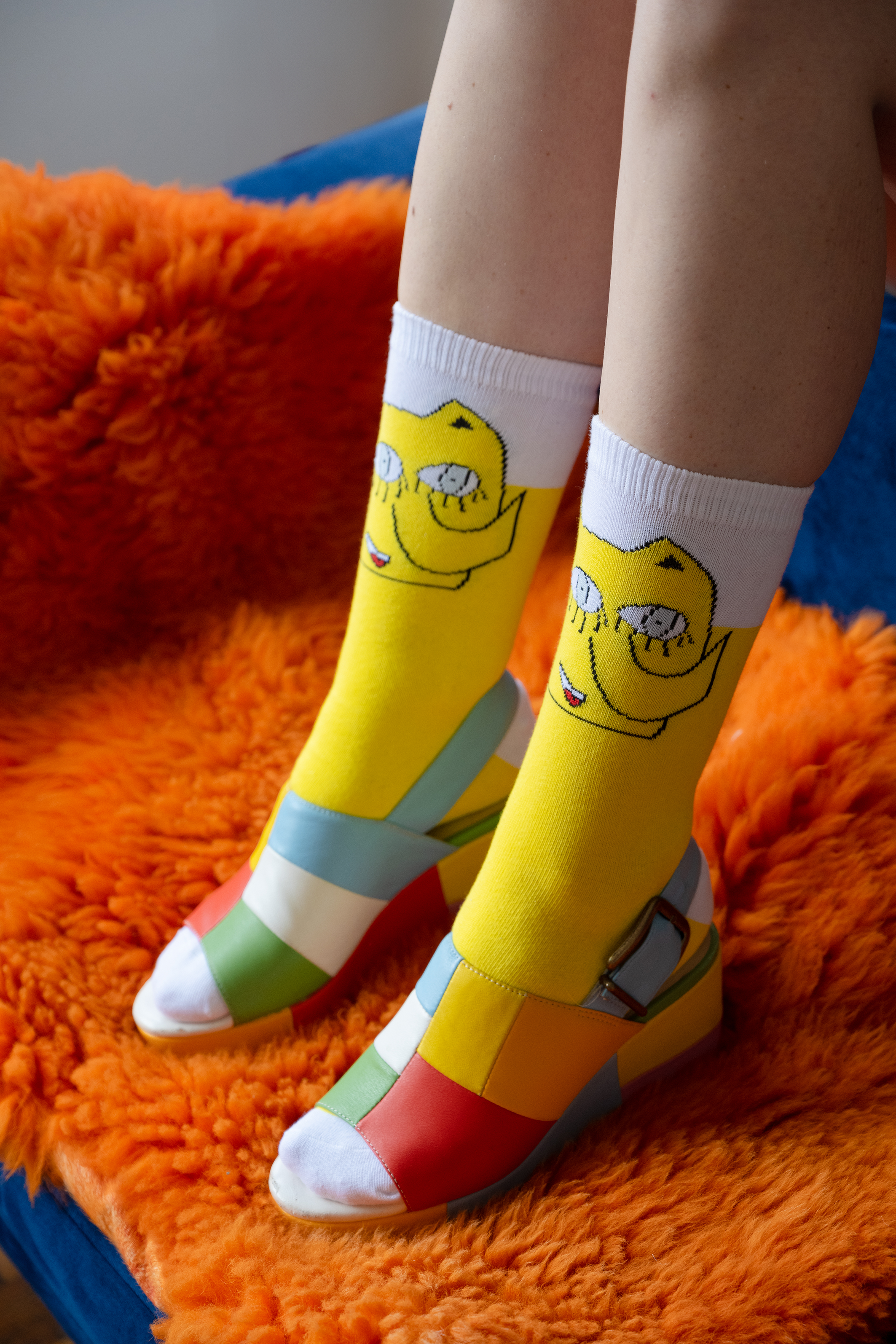 Soft cotton-blend sock in bright yellow featuring the El Llamafante character. Designed for everyday comfort with a bold, playful spirit. Finished with the signature tag: