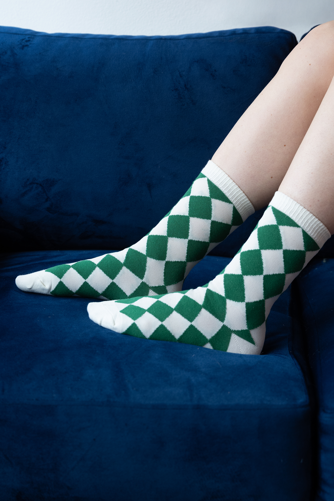 Harlequin Socks - Green & Beige
